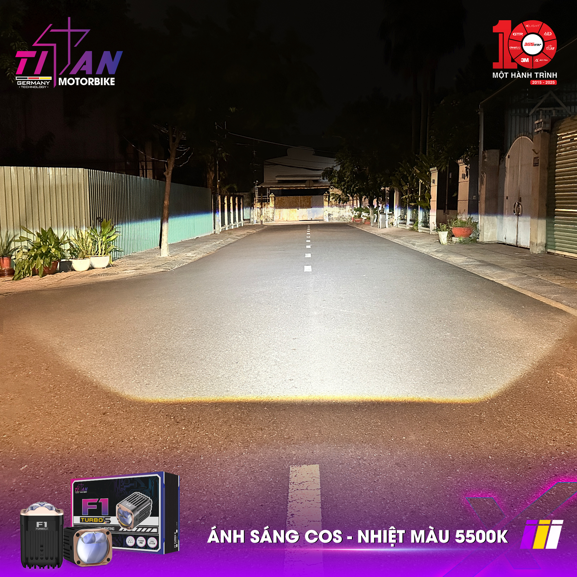 Vào tháng 7/2025, Titan Moto ra mắt siêu phẩm F1 Turbo S – Đèn trợ sáng bi cầu với công nghệ trợ pha kép, giả lập Laser, mang đến luồng chiếu pha cực “khủng”, siêu gom nét, siêu xa, phá vỡ mọi giới hạn bóng tối.